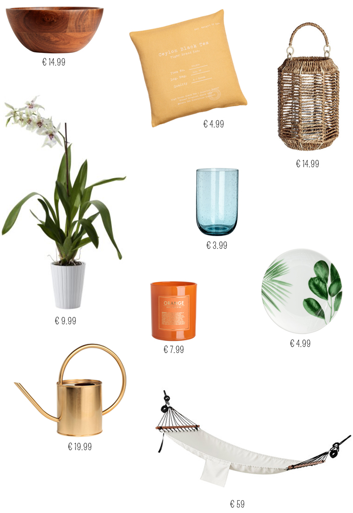 São todas da H&M, exceto a orquídea e a cama de rede, que são do Ikea.
